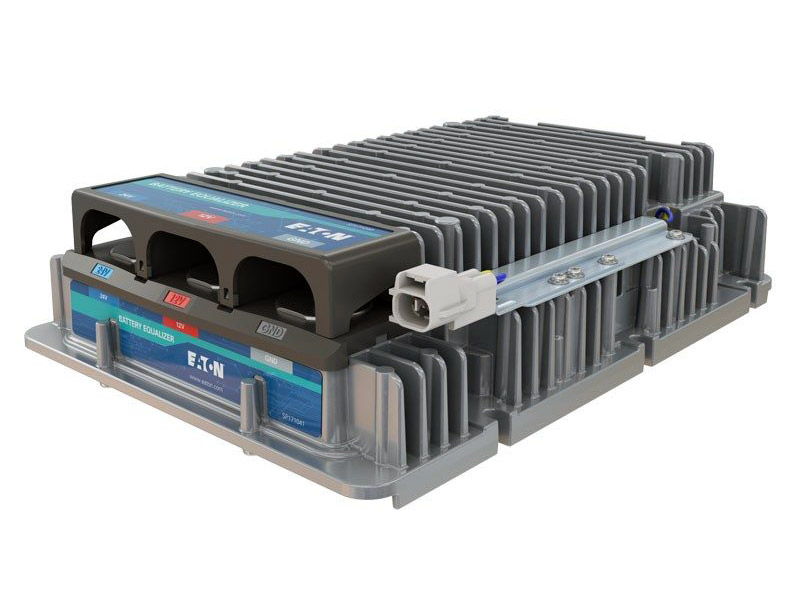 Специальный преобразователь Eaton, также известный как эквалайзер батареи, работает вместе с другим преобразователем, который получает питание от 600-вольтовой системы BEV и понижает его до 24 вольт. Затем блок eMobility понижает его до 12 В для использования в низковольтных системах и для питания резервной 12-вольтовой батареи в случае неисправности основного источника питания. Имея эту функцию эквалайзера, 12-вольтовая аккумуляторная батарея и разделенная 24-вольтовая аккумуляторная система гарантируют, что основное оборудование безопасности может работать от 12 вольт в случае сбоя питания. Эта возможность делает преобразователь уникальным среди продуктов, предлагаемых в этой области.