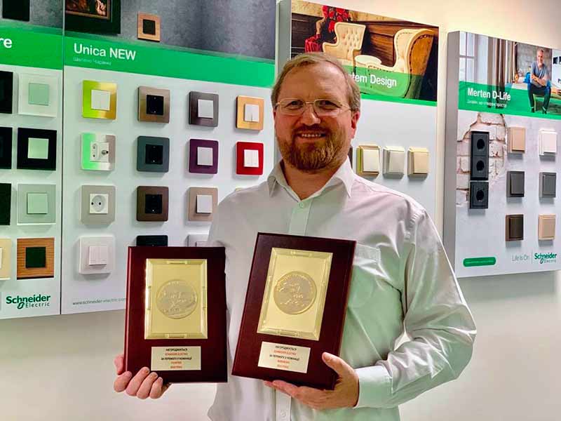 По его словам, второй год подряд электрофурнитуру Schneider Electric признают лучшей в Украине! В этом году компания стала победителем Украинской народной премии (Всеукраинский национальный проект, который на основе предпочтений отечественных потребителей определяет лучшие товары и услуги среди представленных на рынке) в категориях «Розетки» и «Выключатели».