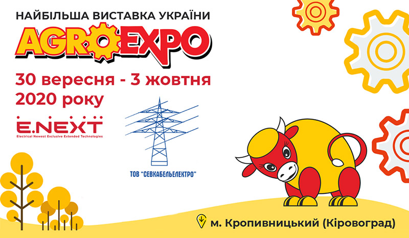 С 30 сентября по 3 октября компания E.NEXT-Украина совместно с дистрибьютором ООО «Севкабельэлектро» принимает участие в ежегодной выставке AgroExpo 2020, которая проходит в Кропивницком.
