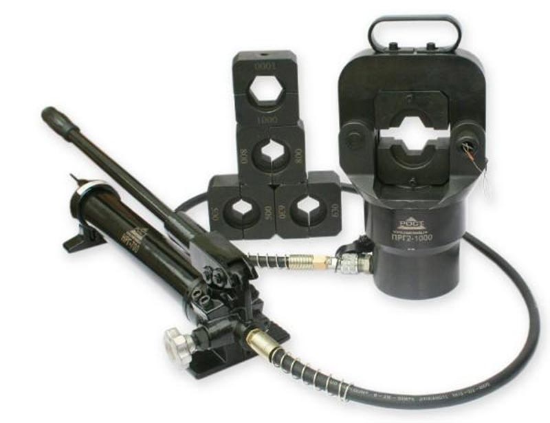 Его параметры впечатляют, специалисты нас поймут. Ручной гидравлический пресс ПРГ2-1000 может выдавать максимальное усилие опрессовки – 45 т. В движение механизм приводит гидравлический насос, рабочее давление которого достигает 70 МПа или 690 атм. Вес пресса – 44,5 кг. Шестигранные матрицы изготовлены в соответствии с немецкой спецификацией DIN 48083. Он может работать в диапазоне от +5 до +40ºС.