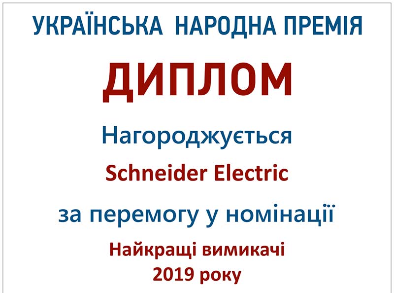Компания «Шнейдер Электрик Украина», лидер по цифровой трансформации, управления энергопотреблением и автоматизации, одержала победу в номинации «Выключатели 2019 года» по результатам независимого рейтингового исследования в рамках проекта «Украинская народная премия».